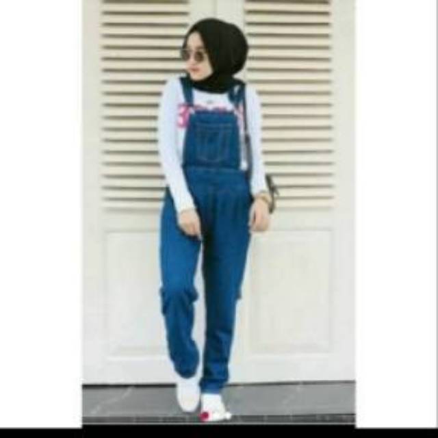 Overall Dress Panjang Jeans Style Hijab Denim Black Navy Outfit Cantik Remaja Kekinian Terbaru Tov99 Shopee Indonesia
