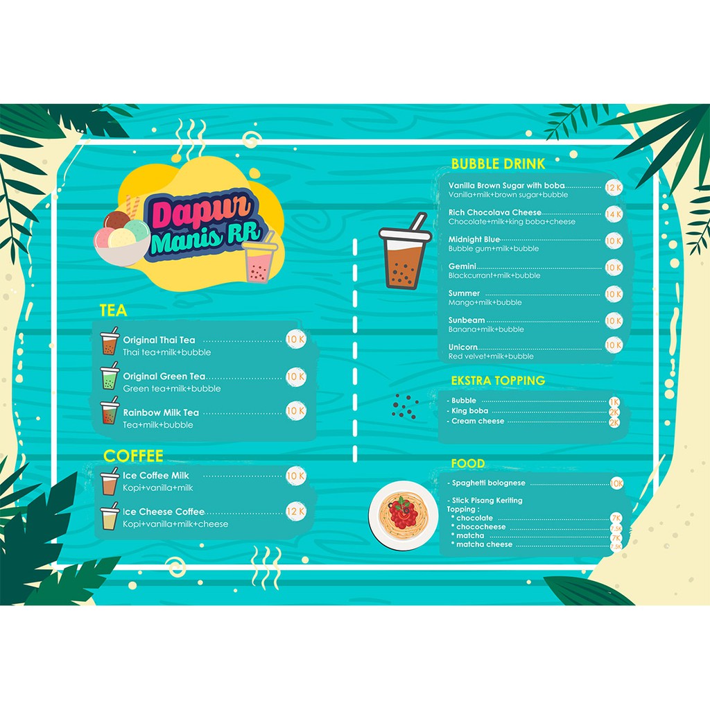 Cetak Daftar Menu Minuman Bubble Tea Boba Cafe Shopee Indonesia