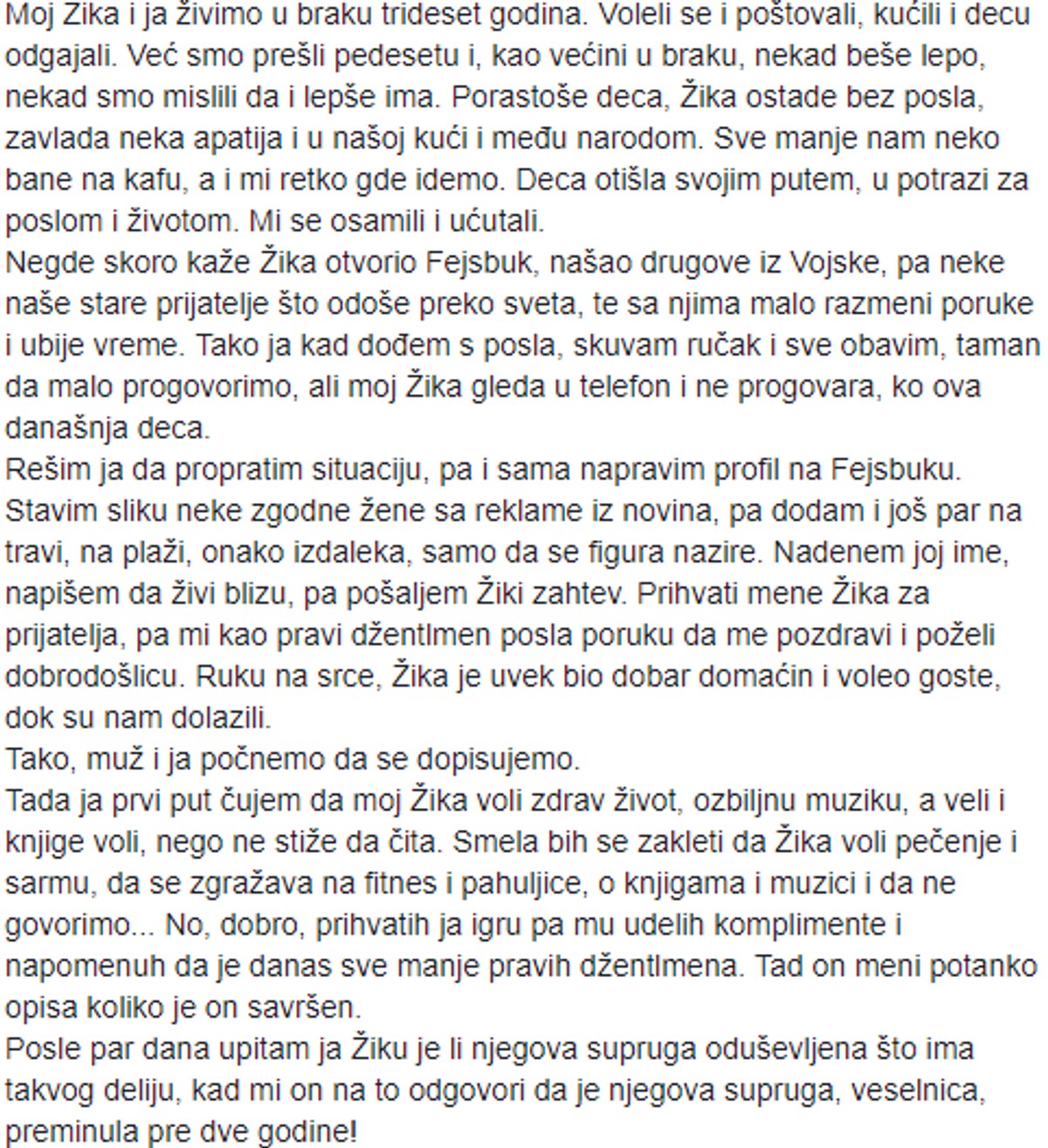 Moj Muz Zika Ima Fejsbuk Napravila Sam Lazni Profil On Je Poceo Da Mi Se Udvara A Onda Rekao Da Je Udovac I Samohrani Roditelj