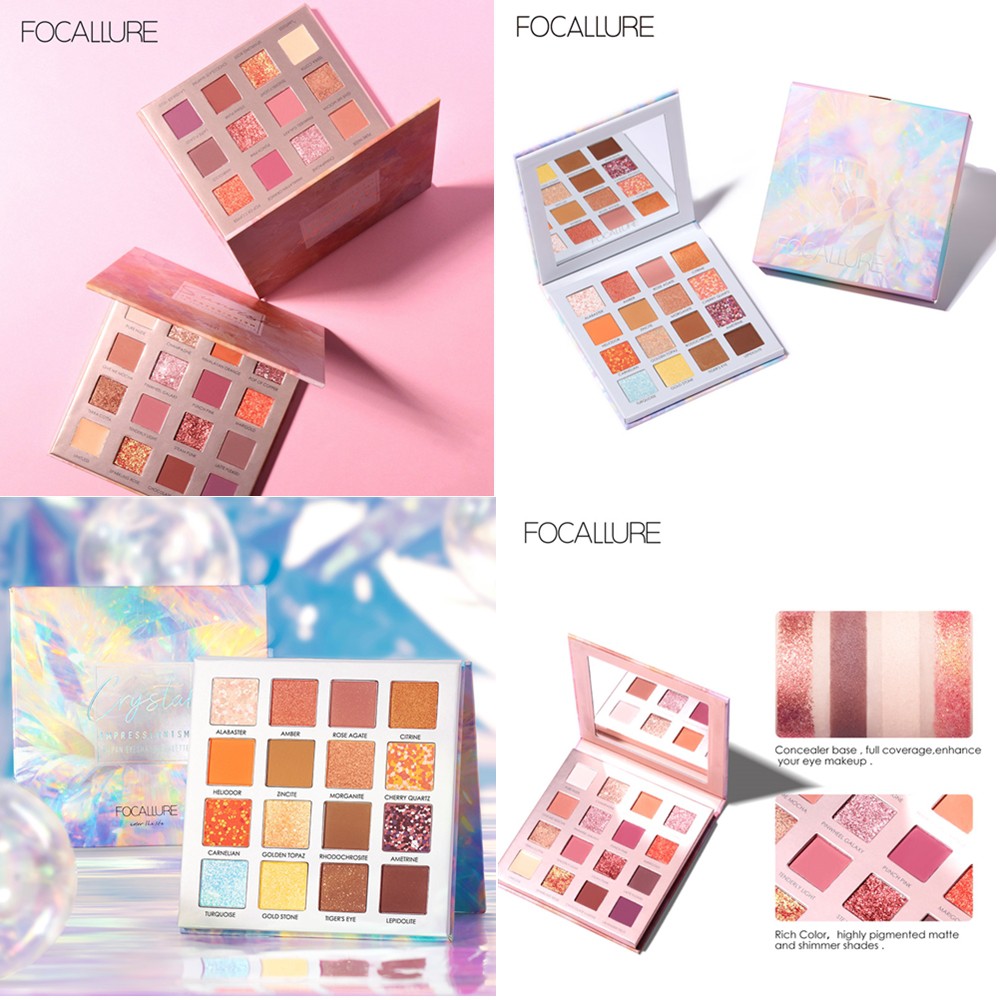 Focallure Crystal Palette 16 Colors Eyeshadow Palette Shimmer Matte Natural Eye Shadow Shopee Indonesia