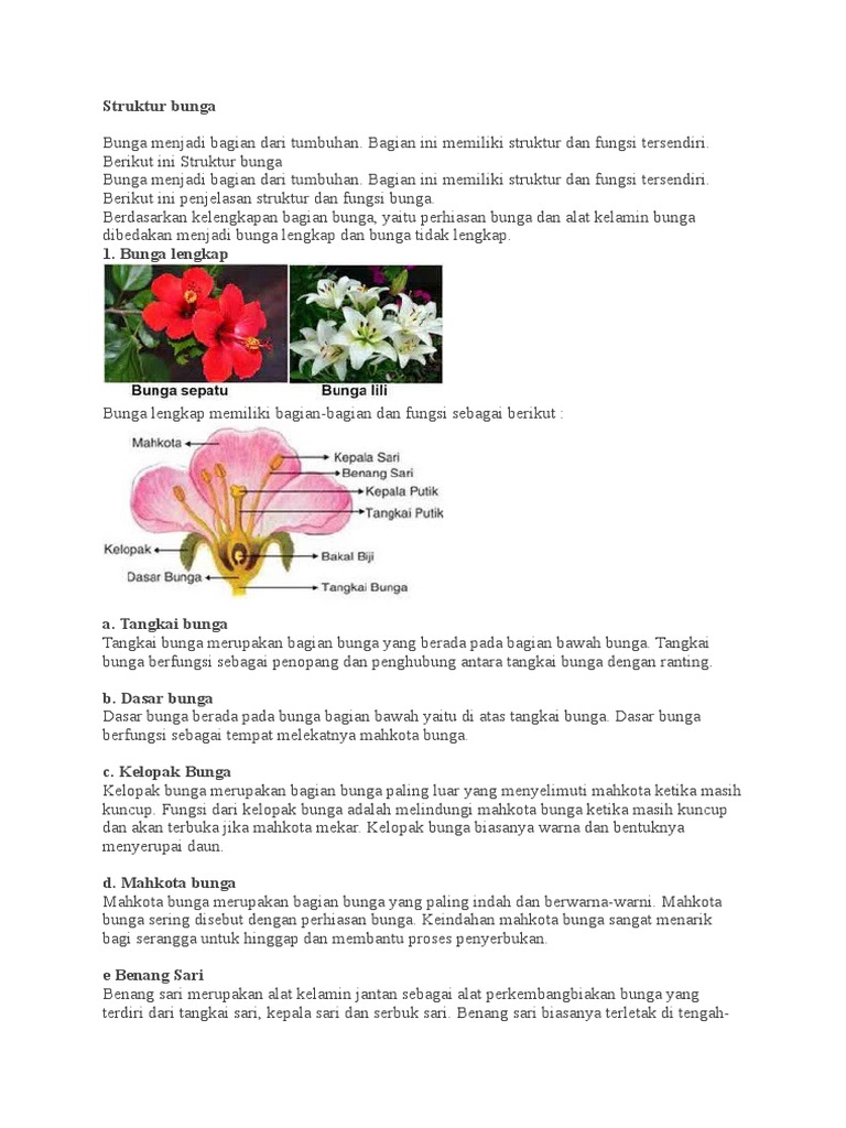 Bagian Bagian Bunga Penjelasan Fungsi Struktur Contoh Lengkap